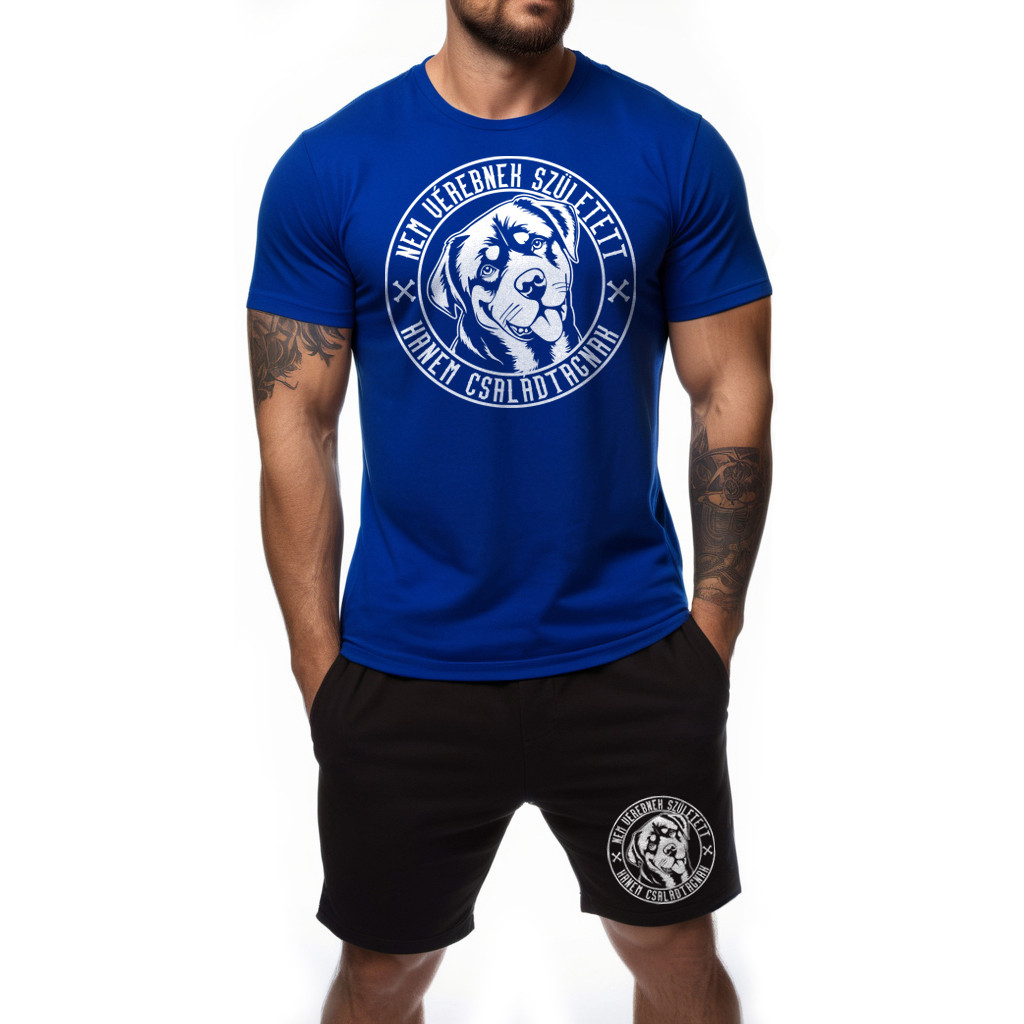 Nem vérebnek született, hanem családtagnak  - Rottweiler / Férfi póló + rövidnadrág / Kék - fekete
