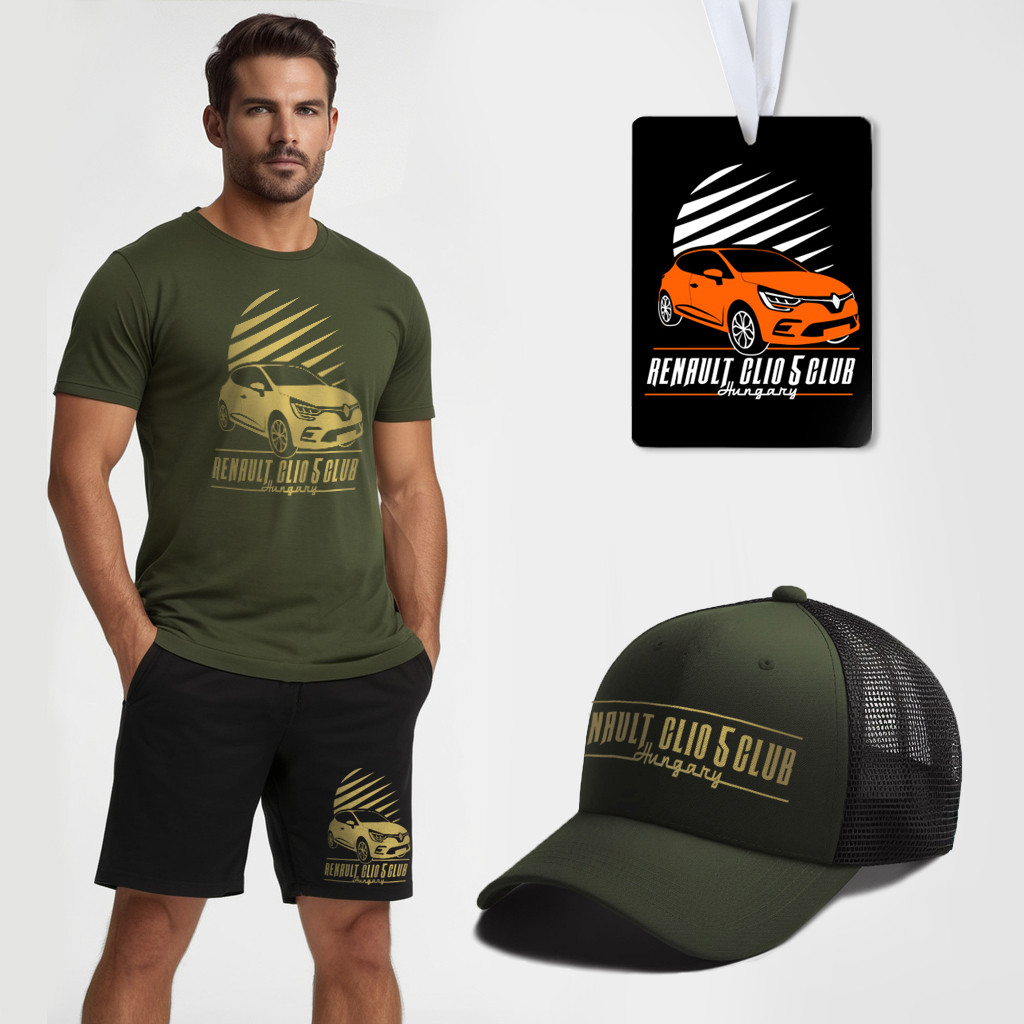 Renault Clio 5 Club Hungary férfi póló (army) + rövidnadrág (fekete) + sapka + illatosító