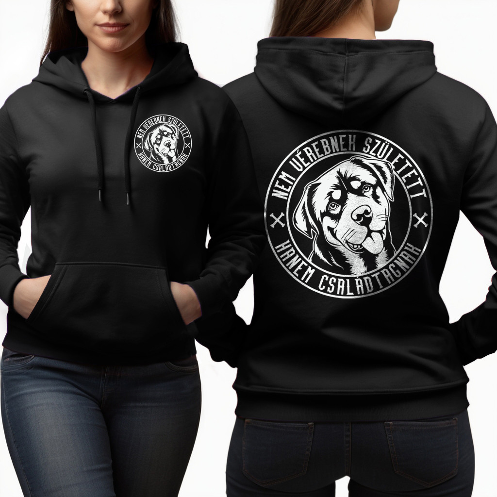 Nem vérebnek született, hanem családtagnak - Rottweiler női pulóver / Fekete